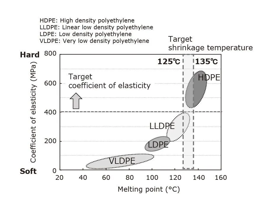 圖4.各種聚乙烯的熔點(diǎn)和彈性系數(shù)