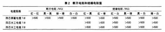 實(shí)驗(yàn)設(shè)備選用的是YBG-2型壓力標(biāo)定罐。實(shí)驗(yàn)時(shí)用量程為500MQ2的兆歐表量測(cè)每根芯線斷開(kāi)電阻及芯線間絕緣電阻。在實(shí)驗(yàn)過(guò)程中留意觀察電纜的滲水情況。實(shí)驗(yàn)最大壓力7MPa。