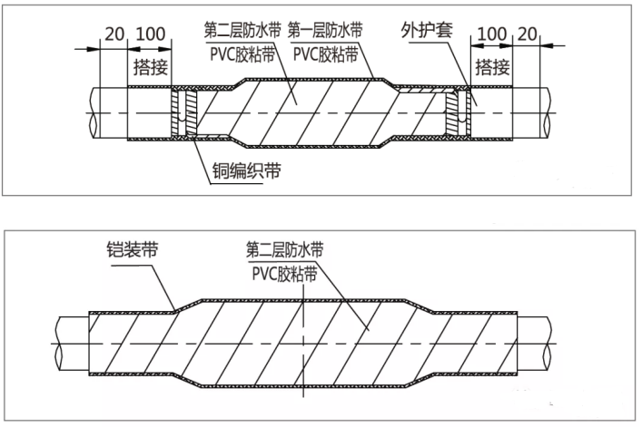 (4)電纜外護(hù)套兩端防水,防止接頭兩側(cè)環(huán)境潮氣進(jìn)入