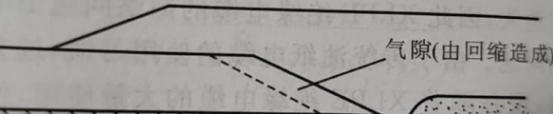 對(duì)于高壓XLPE絕緣電纜的附件裝置,亦有必要仔細(xì)考慮回縮問題,一般在加熱校直的同時(shí)消除XLPE內(nèi)的應(yīng)力,因?yàn)楦邏豪|接頭中不可能制造出屏蔽結(jié)構(gòu),接頭中任何一點(diǎn)的XLPE回縮都會(huì)給接頭帶來(lái)致命的缺點(diǎn),即氣隙(見圖3),該氣隙內(nèi)產(chǎn)生部分放電,將會(huì)導(dǎo)致接頭擊穿。