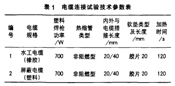 (5)將連接段電纜加熱至微熔狀況,當(dāng)即粘上熱熔膠片。