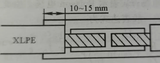 關(guān)于高壓XLPE絕緣電纜的附件設(shè)備,亦有必要仔細(xì)思索回縮問題,一般在加熱校直的一同消弭XLPE內(nèi)的應(yīng)力,因?yàn)楦邏豪|接頭中不可能制作出屏蔽結(jié)構(gòu),接頭中任何一點(diǎn)的XLPE回縮都會(huì)給接頭帶來(lái)喪身的缺陷,即氣隙(見圖3),該氣隙內(nèi)發(fā)生部分放電,將會(huì)引起接頭擊穿。