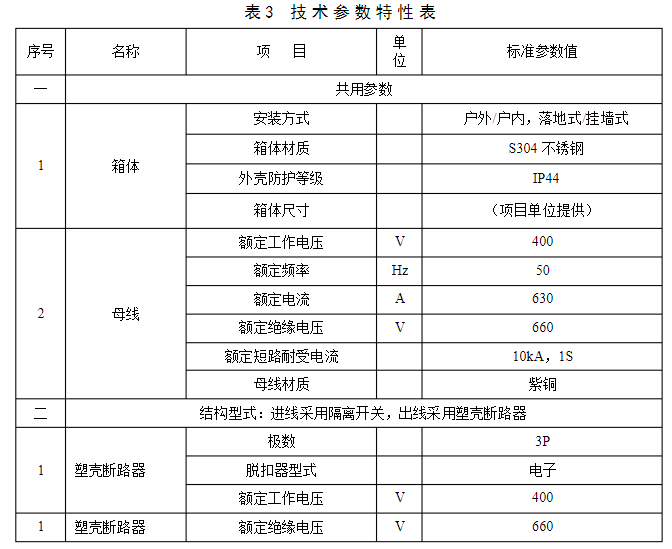 低壓電纜分支箱技術(shù)參數(shù)特性見表3