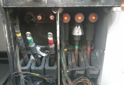 (1)環(huán)網(wǎng)柜1#間隔插拔頭因預(yù)留電纜長度缺乏,導(dǎo)致壓接點(diǎn)受力,觸摸電阻增大發(fā)熱引發(fā)故障