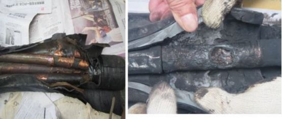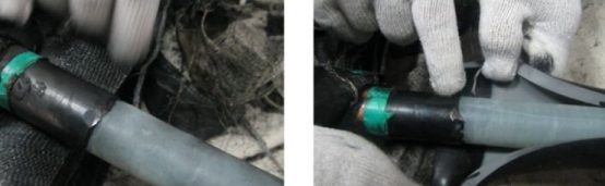 事例:故障電纜中心接頭杰出相電纜外半導(dǎo)電層